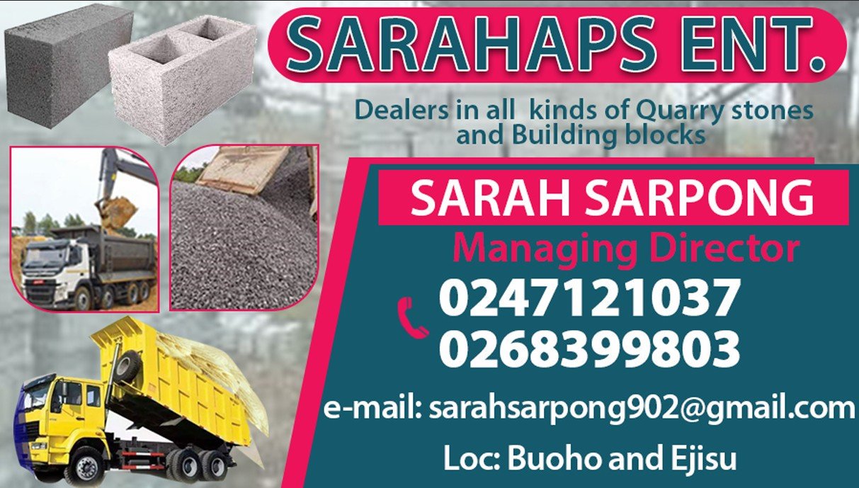 At Sara Sarps Ent., we provide high-quality quarry stones and building materials, ensuring timely delivery for all your construction needs in Kumasi and surrounding areas.